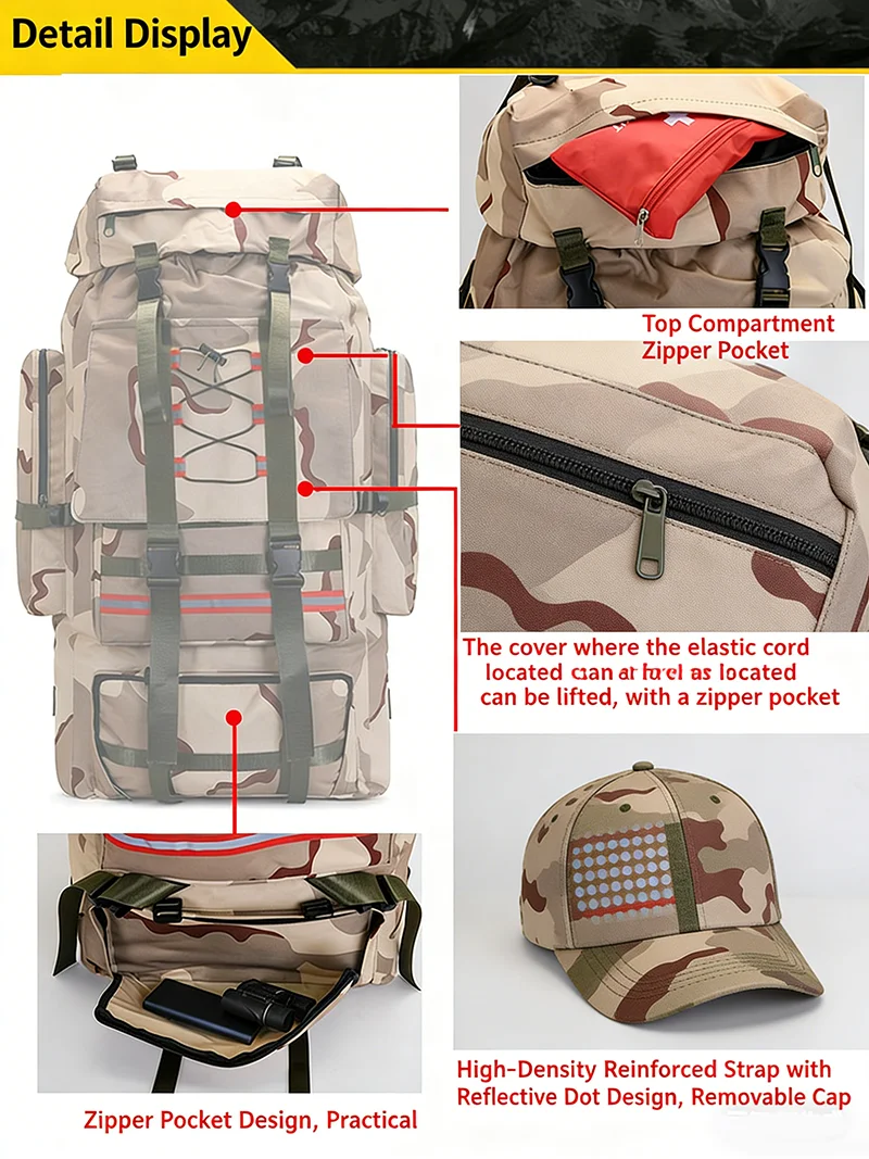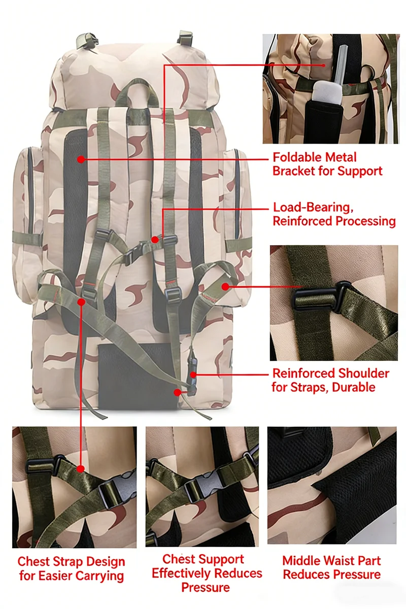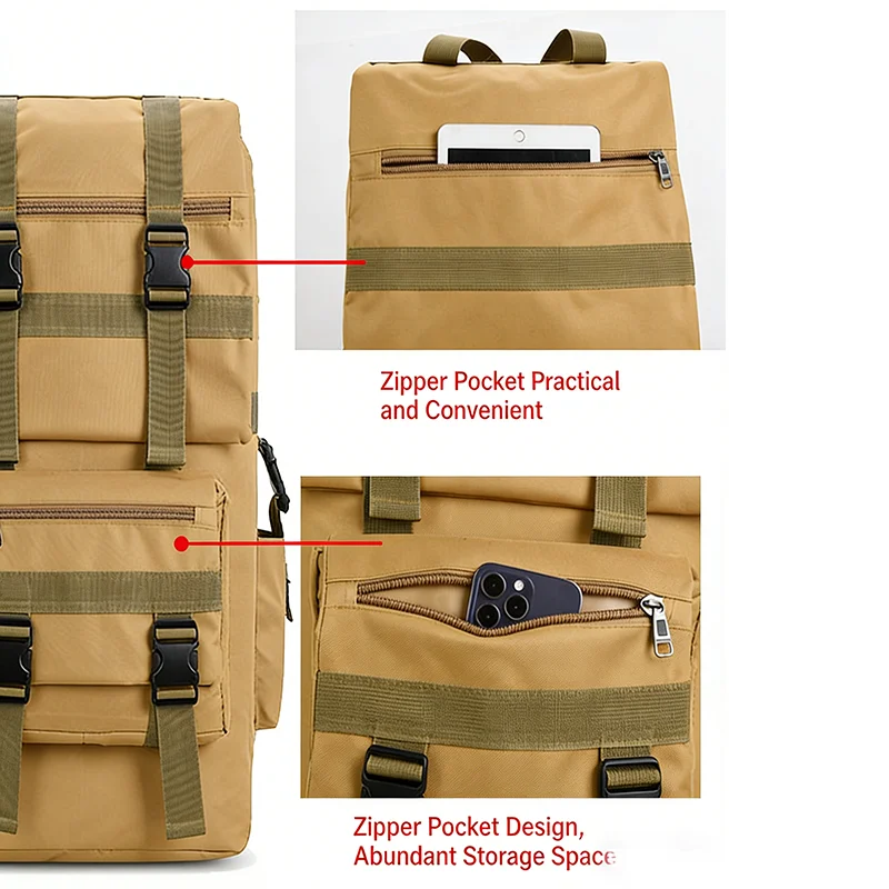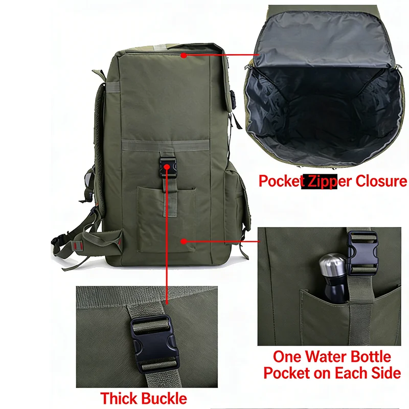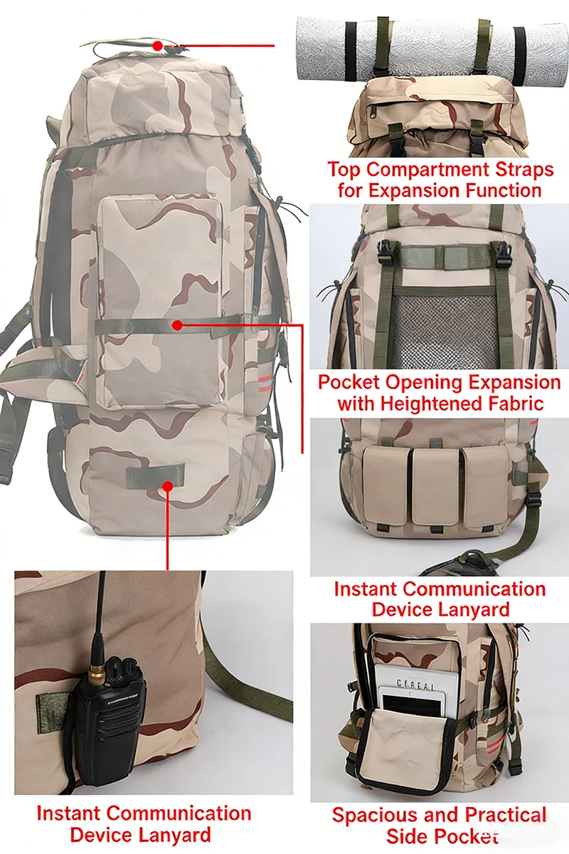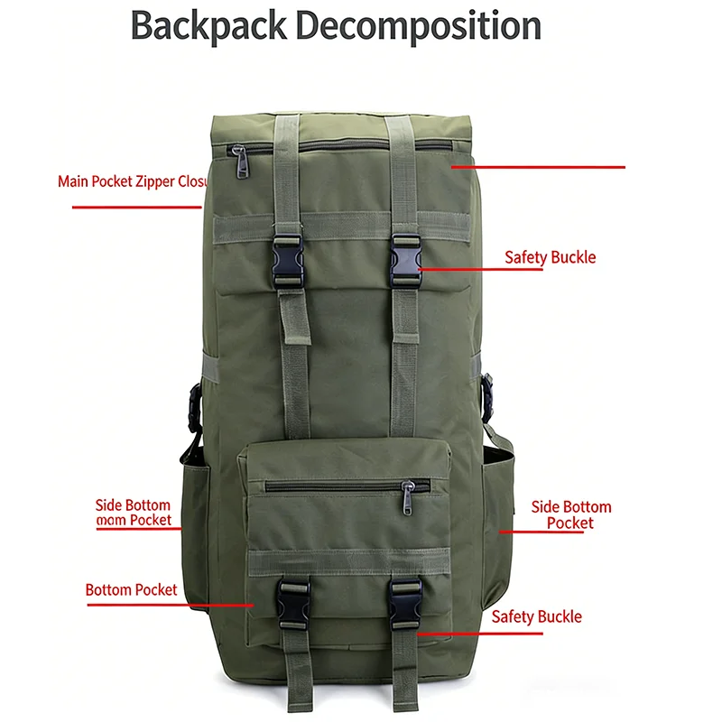 Built for endurance and versatility, this backpack is perfect for hiking, trekking, camping, or any outdoor adventure where space, protection, and reliability are essential.